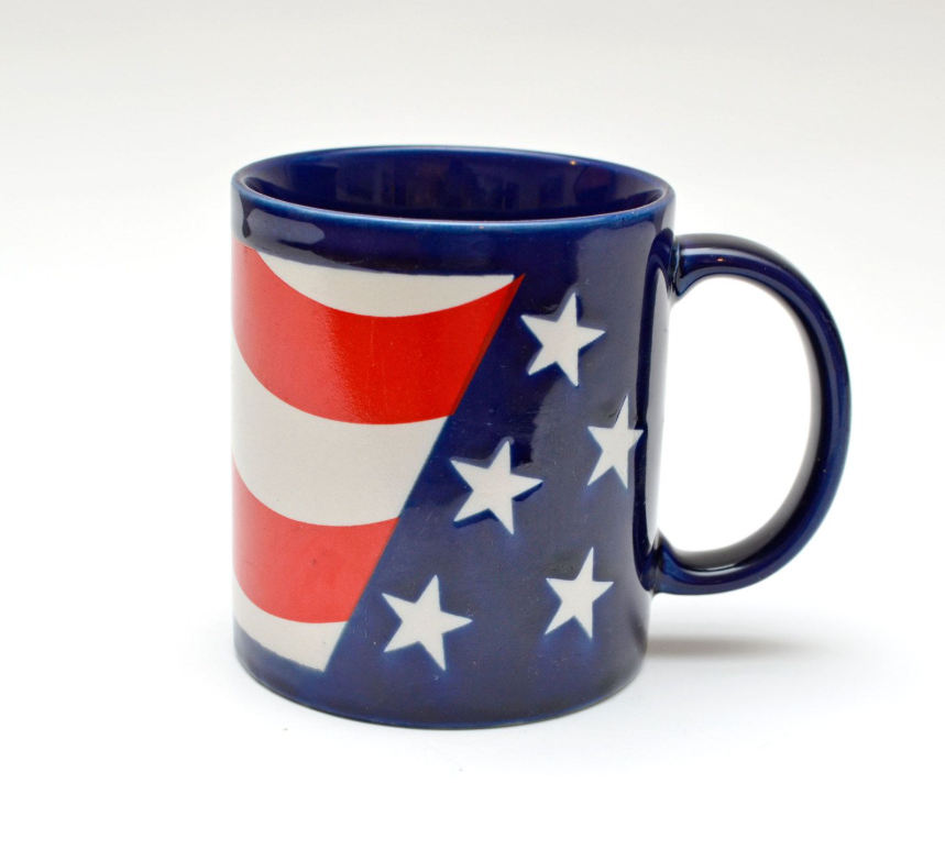 Sip pride from Now American Gift’s Star-Spangled Mug, everyday American gift express favorite. 15oz ceramic mug wraps 360° in stars and stripes glaze, microwave/dishwasher safe.